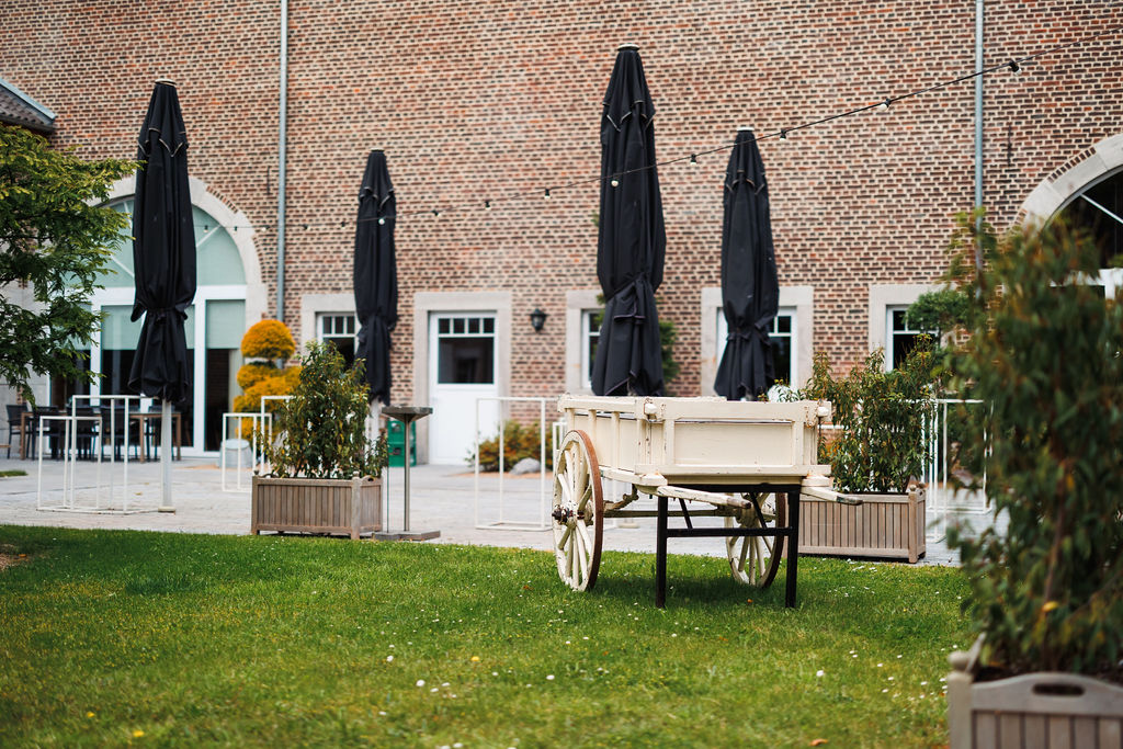 Je ontdekt onze intieme binnenkoer meteen als je door het poortgebouw naar binnen wandelt. Ze leent zich perfect en ‘kids proof’ voor een intieme receptie. De binnenkoer biedt ook rechtstreeks toegang aan de verschillende zalen.